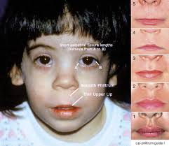 The clinical appearance of PWS includes dysmorphic facial features with almond-shaped eyes a narrow bifrontal diameter and a thin upper lip. A thin upper lip. Femoral-facial syndrome FFS also known as femoral hypoplasia-unusual facies syndrome FHUFS is a rare and sporadic multiple congenital anomaly syndrome comprising bilateral femoral hypoplasia and characteristic facial features such as long philtrum thin upper lip micrognathia with or without cleft palate upward-slanting palpebral fissures and a short nose with broad tip. Infants with FVS may have a vertical fold of skin on either side of the nose that forms a groove under the eye epicanthal folds. AR microcephaly occasional cleft palate long simple philtrum thin upper lip flattened nasal bridge epicanthus upturned nose Retinoblastoma 13q14. Only Lip-Philtrum Guides distributed by the University of Washington should be used with the University of Washington FASD 4-Digit Diagnostic Code. An abnormally long groove philtrum on the upper lip andor a groove in the chin.