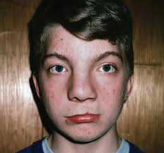 Characteristic facial features may include a rounded bulbous pear-shaped nose.