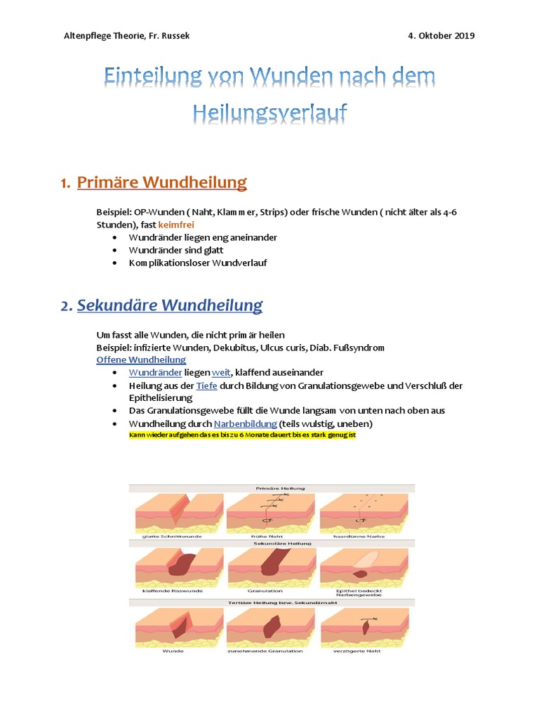 Verzögerte Primärheilung Von einer verzögerten Primärheilung spricht man wenn eine Verletzung nicht sofort adap-. Man unterscheidet grundsätzlich zwei Arten wie Wunden heilen können.