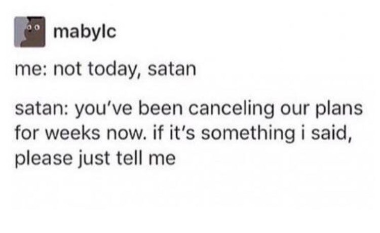 8 23 KB. Blackout dates apply. Not Today Satan Imgflip.
