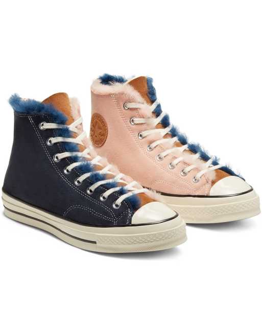 Canvas upper Vulcanized sole Tonal toe box Runs a half-size large All sizes are listed in U. Converse has updated its iconic Chuck 70 Hi with a Winter-ready construction of Navy Blue and Baby Pink shearling and suede. Ad Pronto pro Rolê Com um Look Descolado e Estiloso.