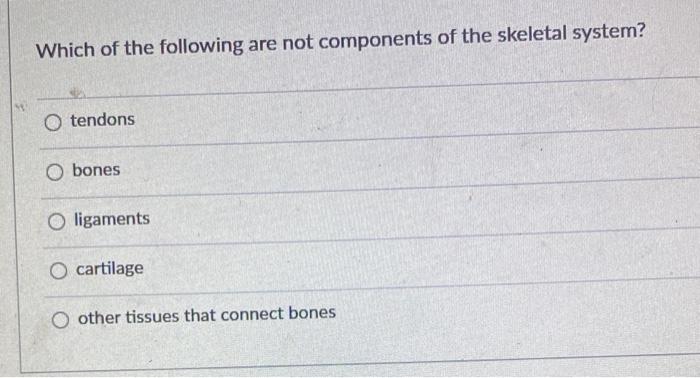 Which Of The Following Is Not A Component Of The Skeletal System?