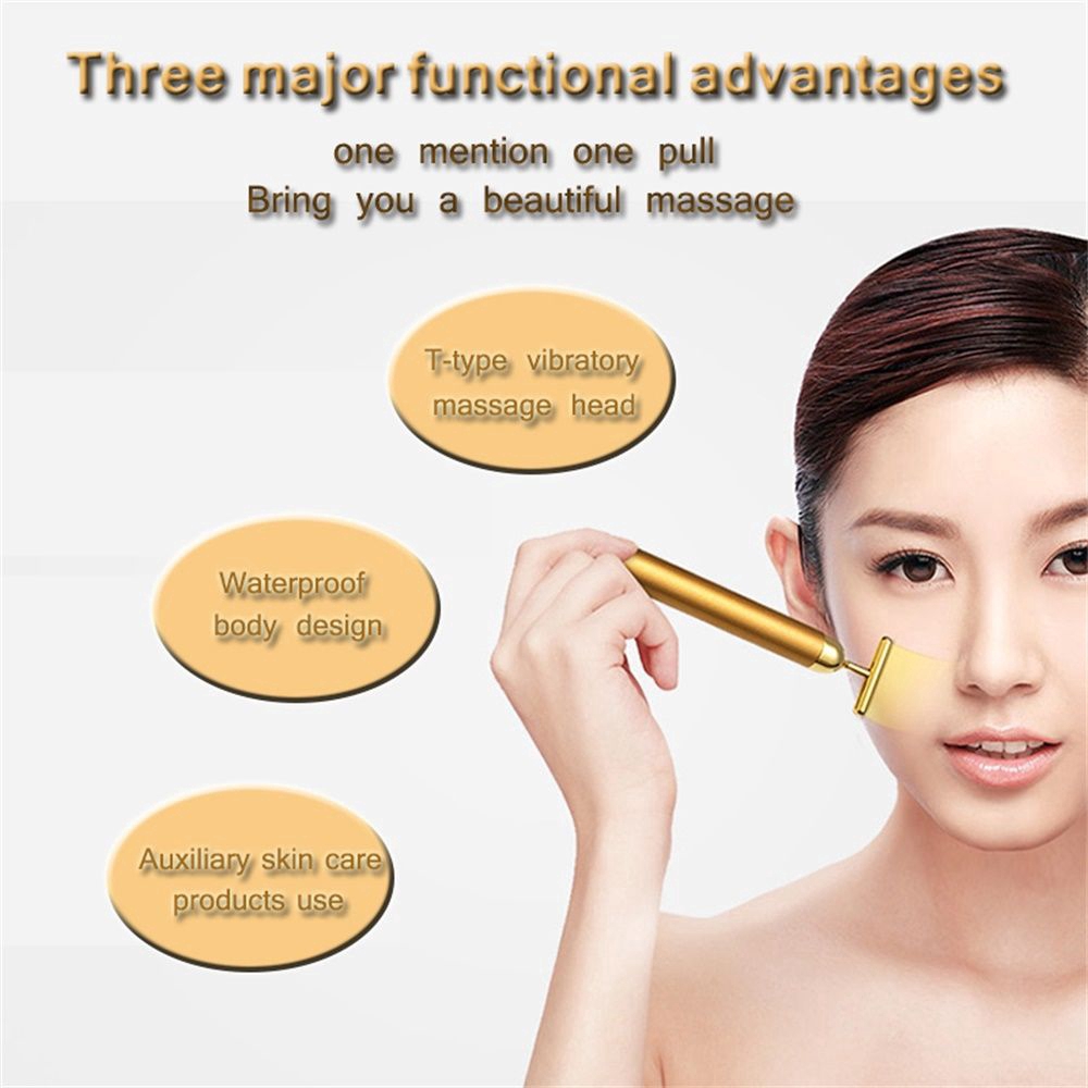 Rika LED facial massager. Beauty Bar 24k Golden Pulse Facial Massager T-Shape Electric Sign Face Massage Tools for Sensitive Skin Face Pull Tight Firming Lift.
